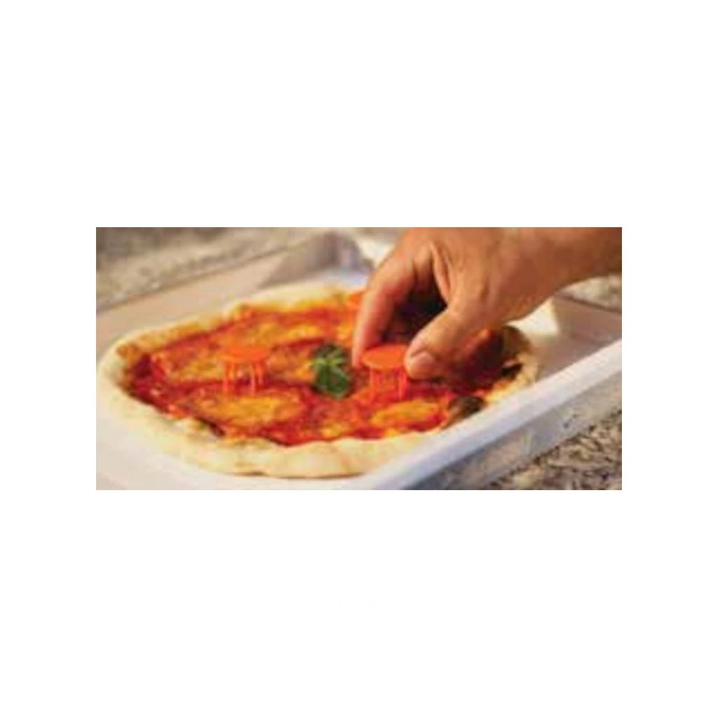 Vymezovač slouží k tomu, aby se kartonová krabice nedotýkala sýry nebo pizzy. Díky němu se pizza nepřilepí k obalu.Vymezovač pizzy a kartonu