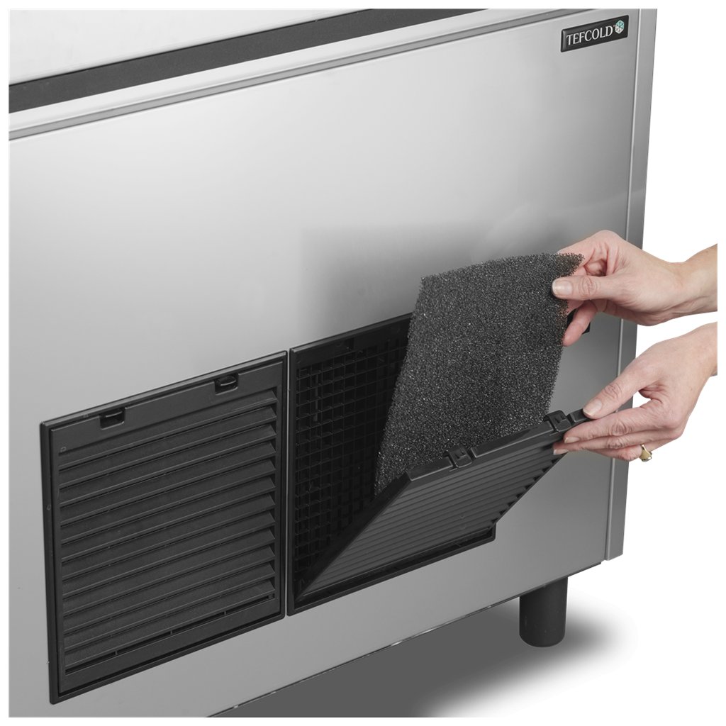 Výrobník kloboučkového ledu z nerezové oceliŘada výrobníků ledu TC využívá nástřikový systém k výrobě křišťálově čistých, pomalu tajících kostek ledu. Díky tomu je výrobník ideální pro použití v kavárnách, restauracích, hospodách, barech, rychlých občerstveních a dalších gastronomických zařízeních, která vyžadují led pro nápoje, koktejly nebo uchovávání potravin v chladu.Vnější část výrobníku TC je vyrobena z nerezové oceli 304, dvířka v přední části umožňují rychlý přístup k izolovanému zásobníku, který je vybaven antibakteriální technologií Ag+, která pomáhá předcházet tvorbě bakterií a zápachu. Pro zajištění efektivního chodu je zařízení vybaveno vzduchovým filtrem, který lze snadno vyjmout a vyčistit.Doplňkové parametry