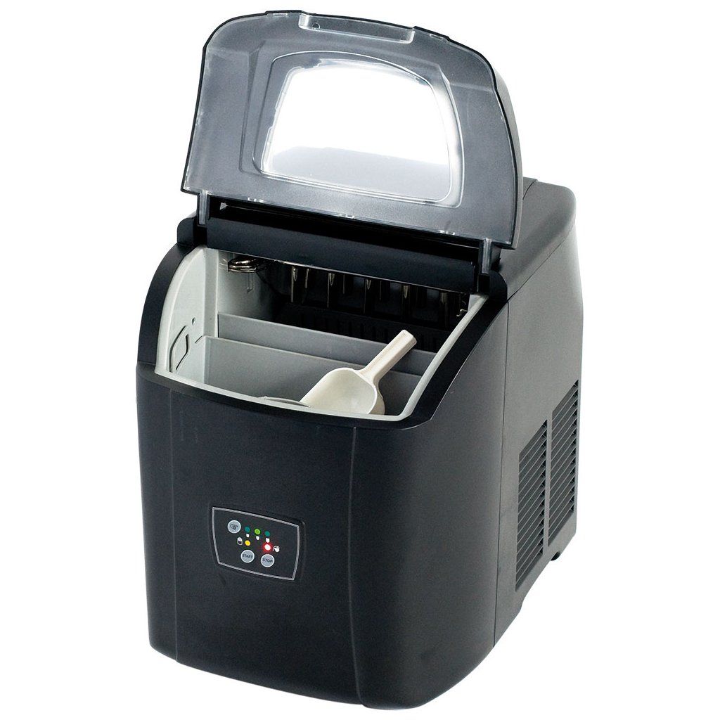 Výrobník ledu s elektronickým řídícím panelem, chlazený vzduchem, plášť je vyroben z odolného plastu. Má 1 kg nádobu na led. Objem do 12 kg na den, udržuje led 4 hodiny. Ruční doplňování vody.Doplňkové parametry