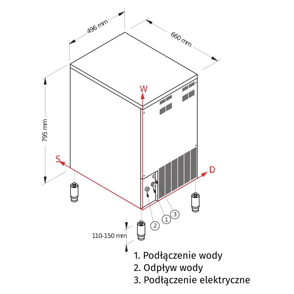 - Nastavitelné nohy z nerezové oceli
