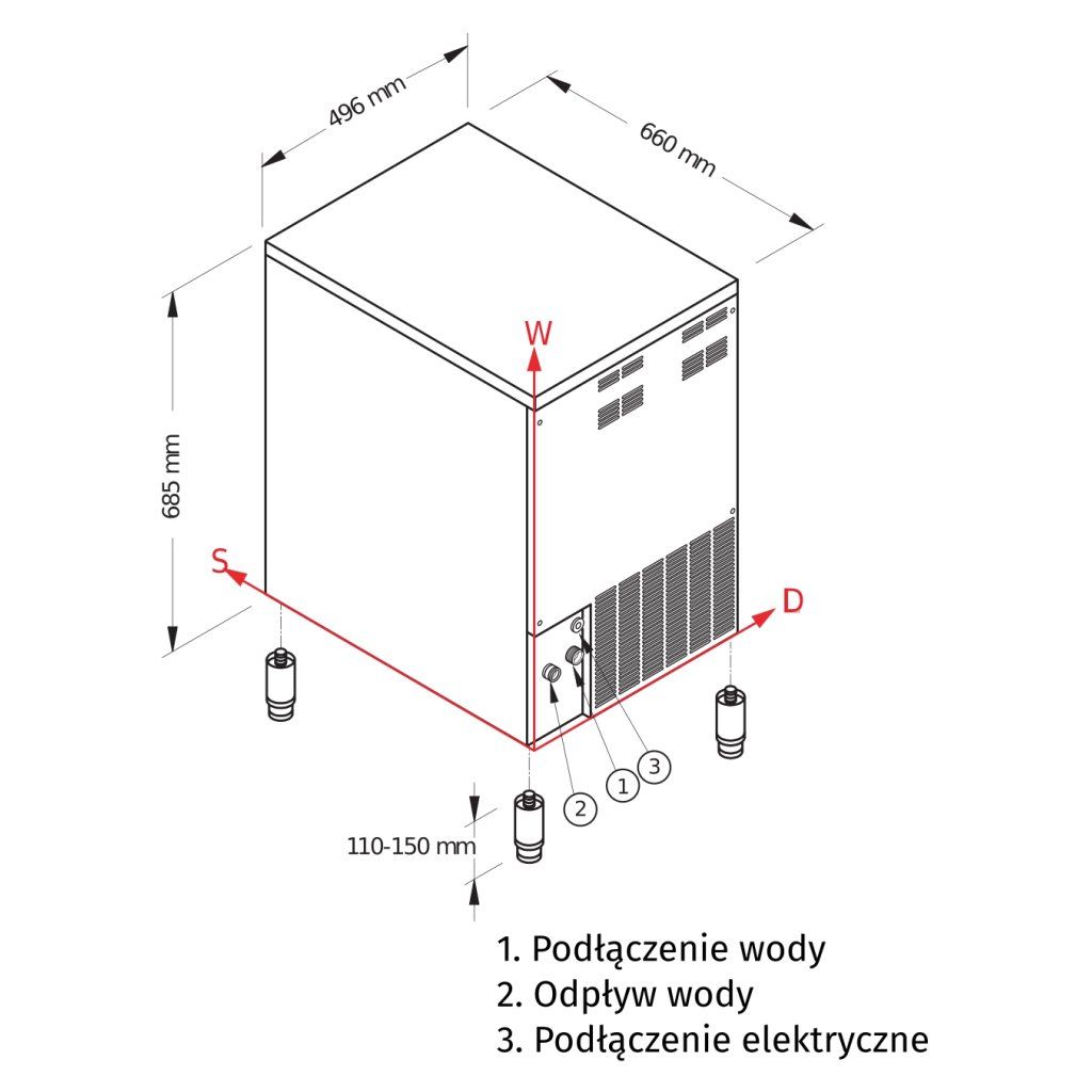 Výrobník ledu na granule 111 kg/24 h, objem zásobníku 19 kg, vzduchem chlazený, 0,47 kW, 496x660x685 mm | NTF, SLF 190 A