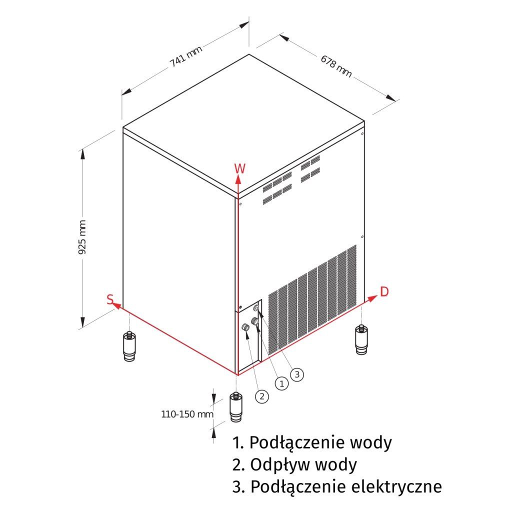 Výrobník ledu na granule 150 kg/24 h, objem zásobníku 38 kg, vodní chlazení, 0,7 kW, 741x678x925 mm | NTF, SLF 320 W
