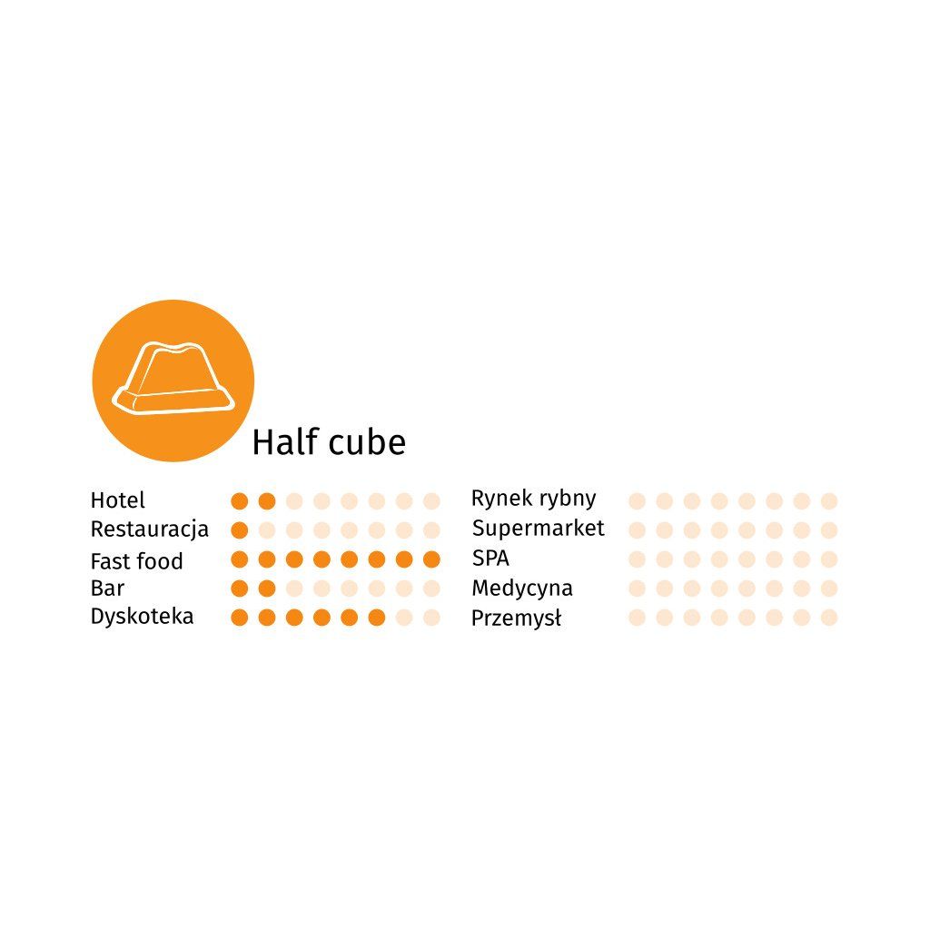 - Velkou výhodou kostky je úhledný, relativně malý tvar vyrobené 7g kostky, který má vliv na estetickou hodnotu podávaných nápojů