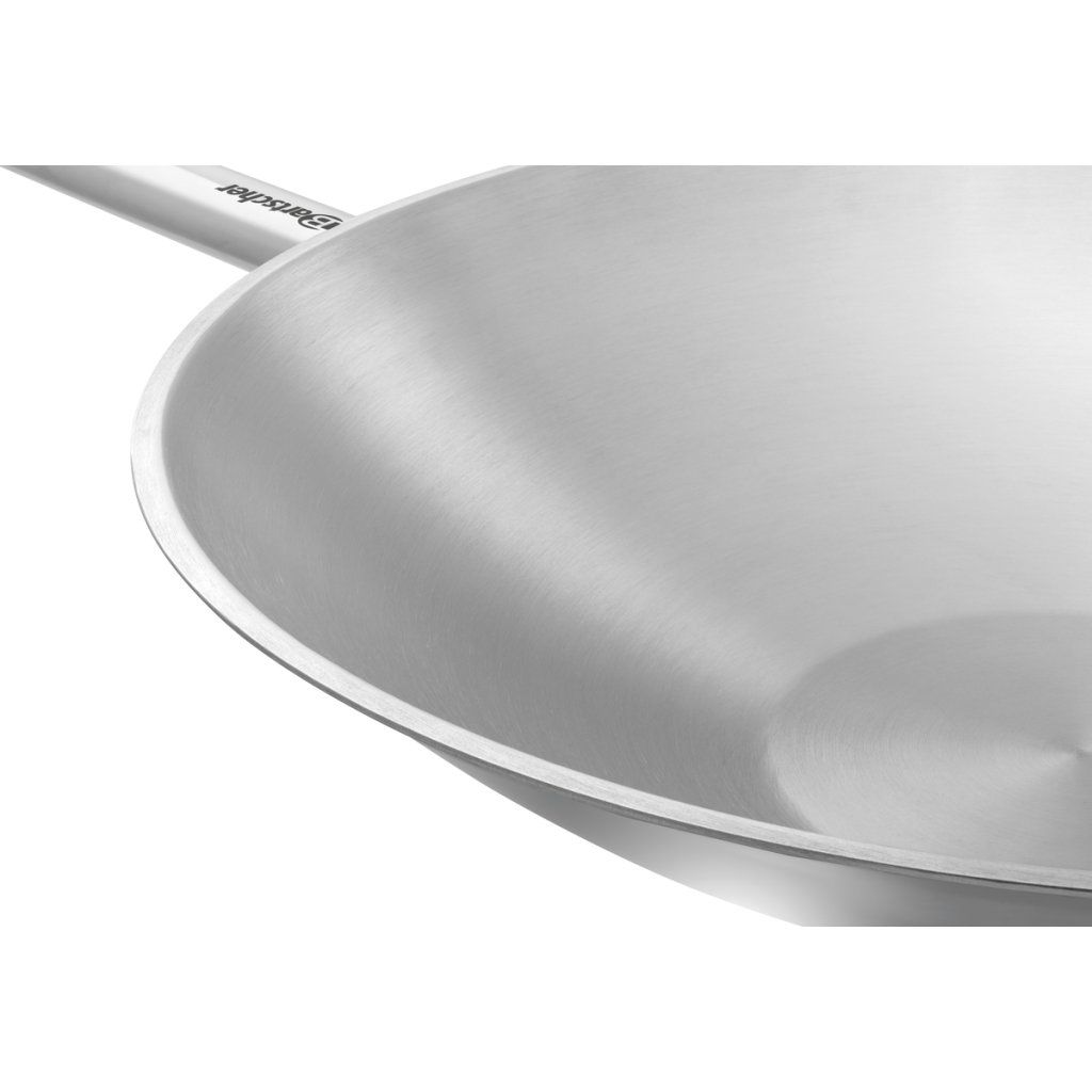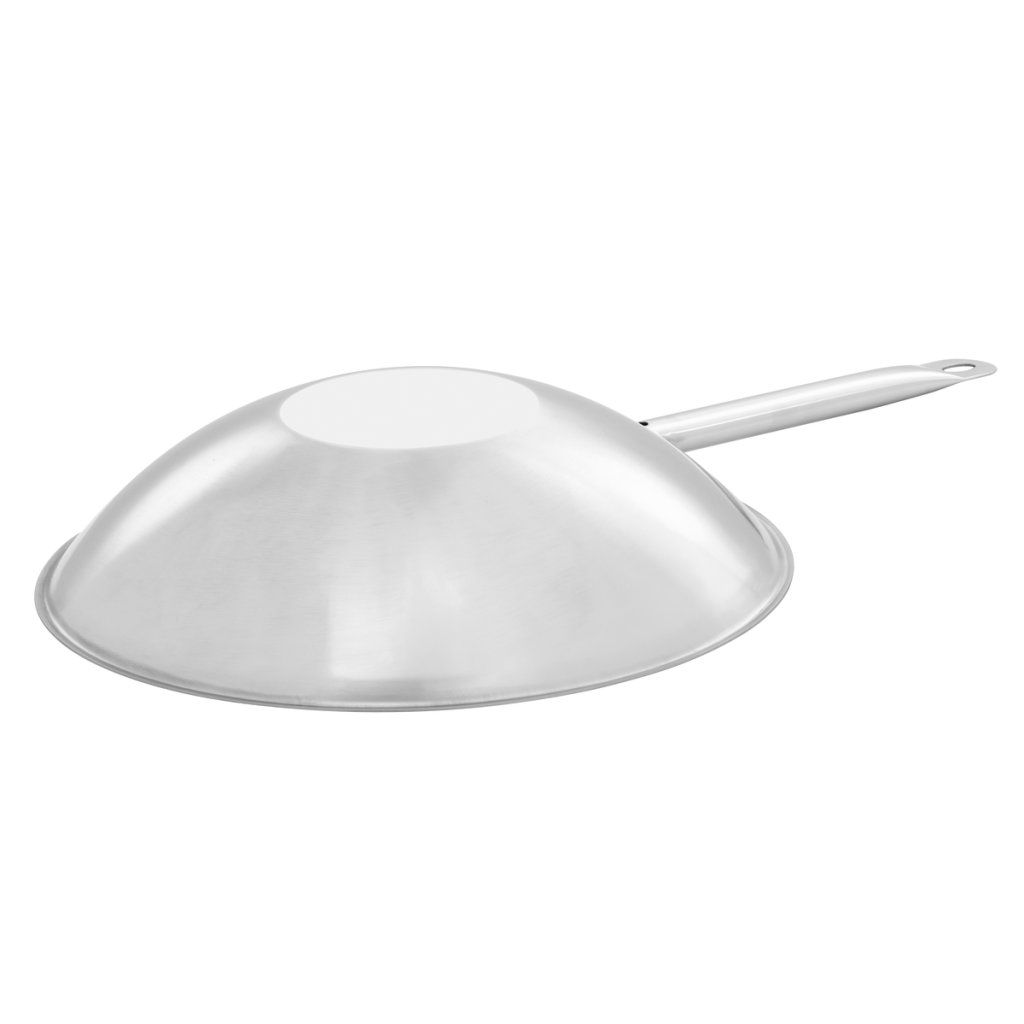 Všestranná wok pánev s plochou odkládací plochou je navržena pro profesionální kuchyně. Je vhodná pro různé typy varných ploch a skvěle se hodí na smažení, dušení, fritování i opékání.