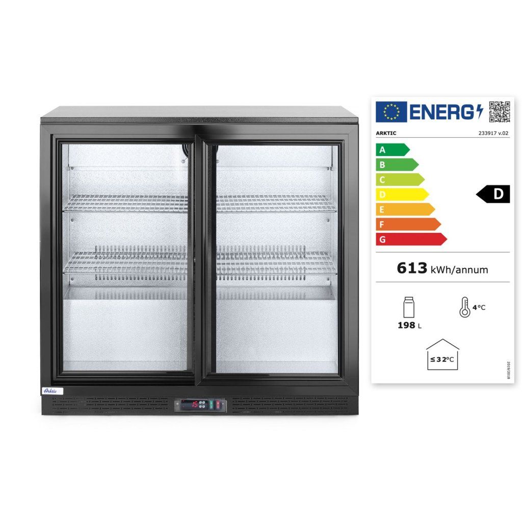 Zadní barová chladnička s dvojitými posuvnými dveřmi, Arktic, 158L, Černá, 220-240V/160W, 900x520x(H)865mm
