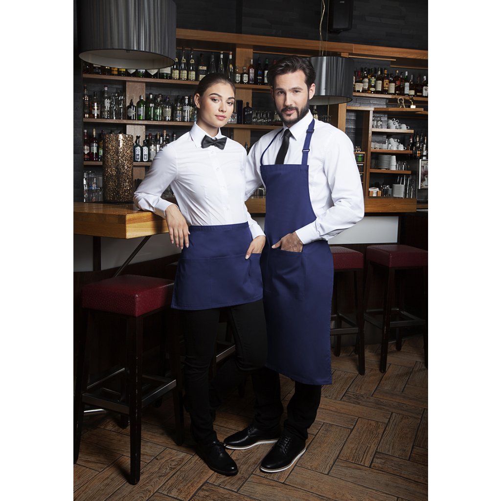 | rozměry: 75 x 90 cm (šířka x délka) | | keprová vazba, 215 g/m² | | zástěra s ramenními pásy z látky zástěry, se zesílenými namáhanými místy | popruh s přezkou pro nastavení délky až do 70 cm | našitá kapsa se 2 přihrádkami (40 x 20 cm) | odpovídající výrobek: Bistro zástěra Basic s kapsou - BBSS 3 (číslo výrobku výrobce)Doplňkové parametry