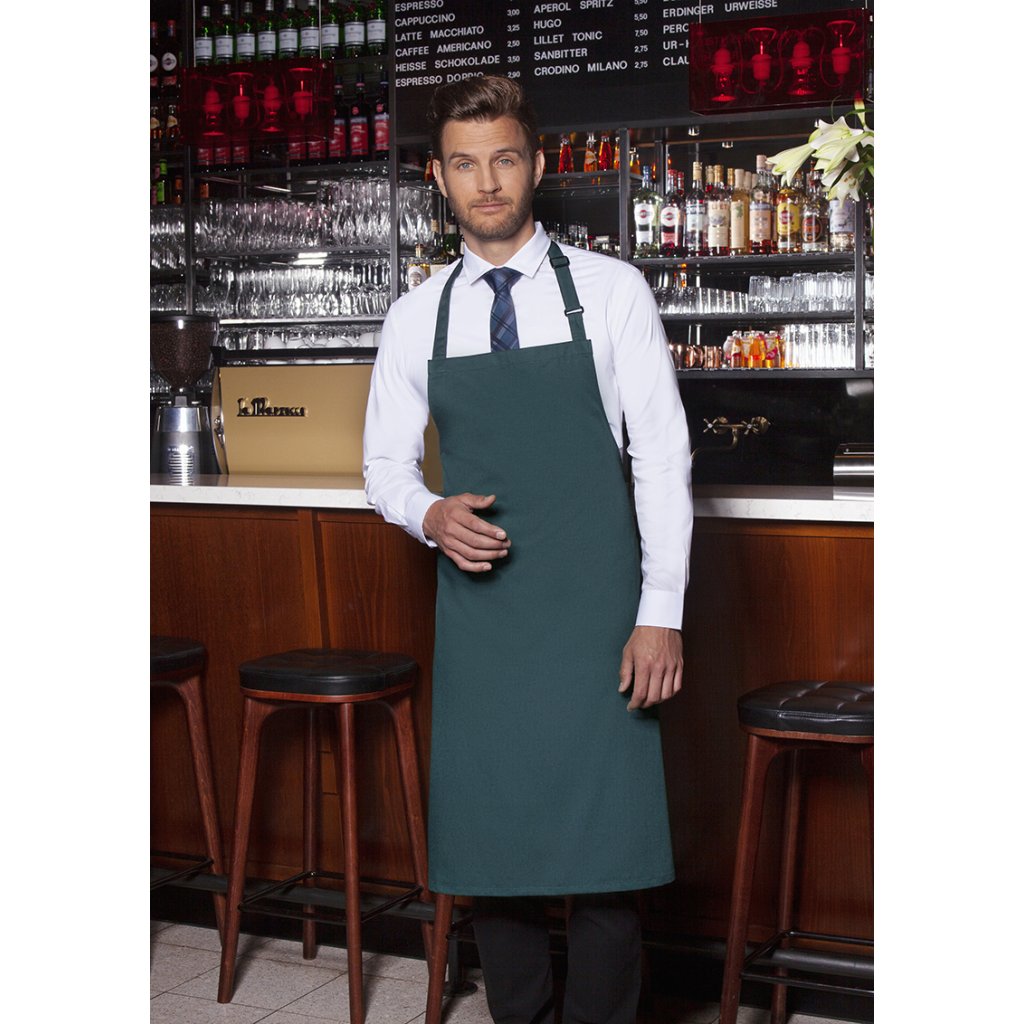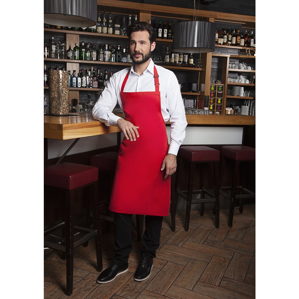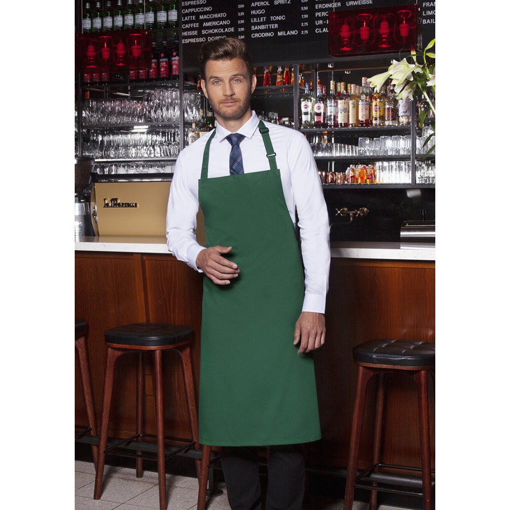 | rozměry: 75 x 90 cm (šířka x délka) | | keprová vazba, 215 g/m² | | zástěra s ramenními popruhy z materiálu zástěry, se zesílenými namáhanými místy | popruh na náprsník s přezkou pro nastavení délky až do 70 cm | odpovídající výrobek: Zástěra s náprsníkem Basic - BLS 5 (číslo výrobku výrobce)Doplňkové parametry