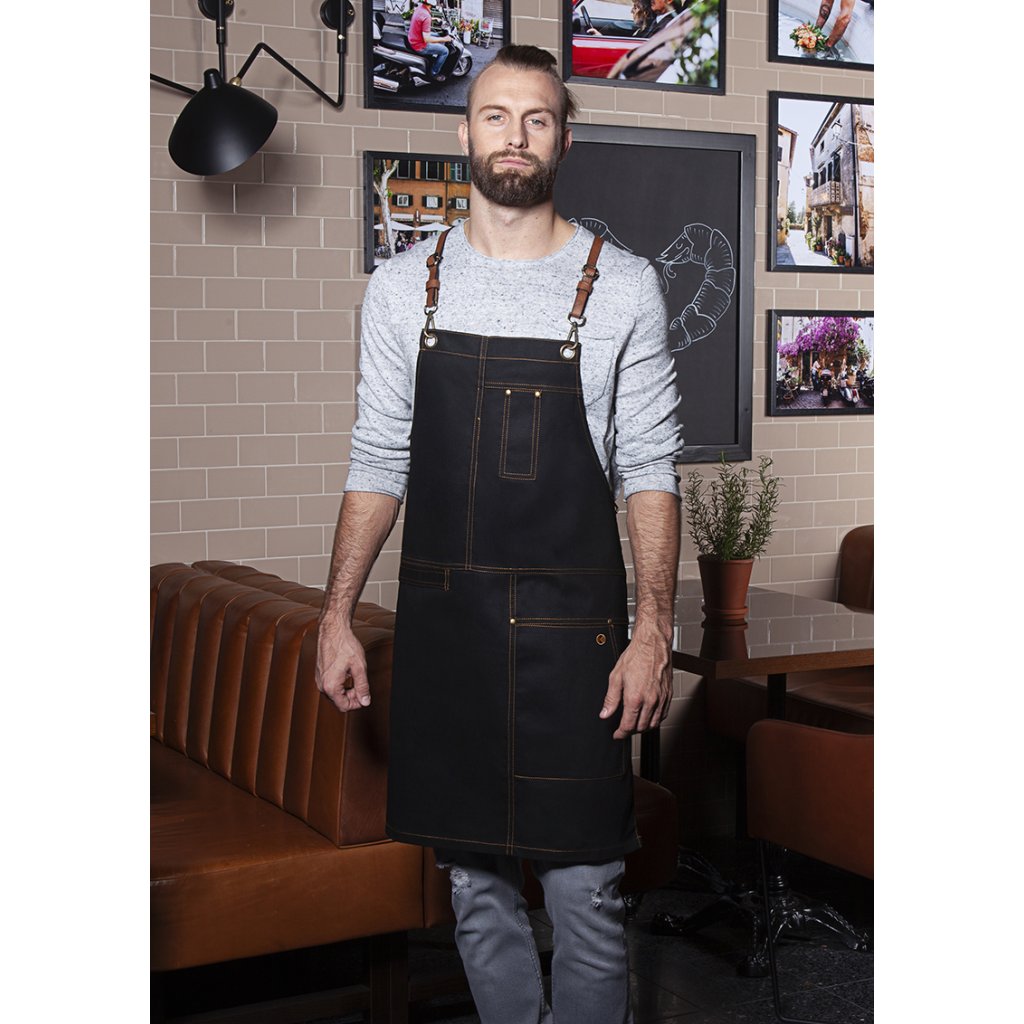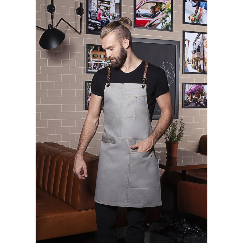 | rozměry: 68 x 80 cm (šířka x délka) | | keprová vazba, 273 g/m² | stálobarevná | | stylová trendy zástěra s kříženými ramínky pro odlehčení krku | snadné sundání a zapnutí všech pásků pomocí karabinových spon | přezky pro plynulé nastavení délky | dodatečný pásek v pase pro regulaci šířky zaručuje pevné uchycení | bronzové nýty a kontrastní prošívání zajišťují nezaměnitelný městský styl | funkční popruhy z pravé kůže | praktická textilní smyčka na pravé straně pro připevnění pouzdra na láhev nebo kuchyňské utěrky | levá kapsa (16 x 24 cm) a přihrádka na pero ve výšce hrudníku | lze prát do 60 °C | odpovídající výrobek: Zástěra Urban Casual-Style - VS 11 (číslo výrobku výrobce)Doplňkové parametry