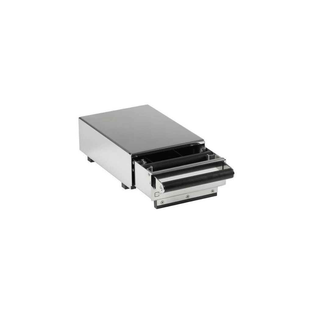 Se zásuvkou na použitou kávu už nemusíte nic klepat do koše. Vyklápěcí zásuvka se vyrábí z vysoce kvalitní nerezové oceli, která vydrží roky. Díky třem gumovým podpěrným bodům je vylamovací zásuvka velmi stabilní a má také gumovou vylamovací tyč, čímž je zajištěno, že vyřazení vydává menší hluk.Zásuvka na použitou kávu